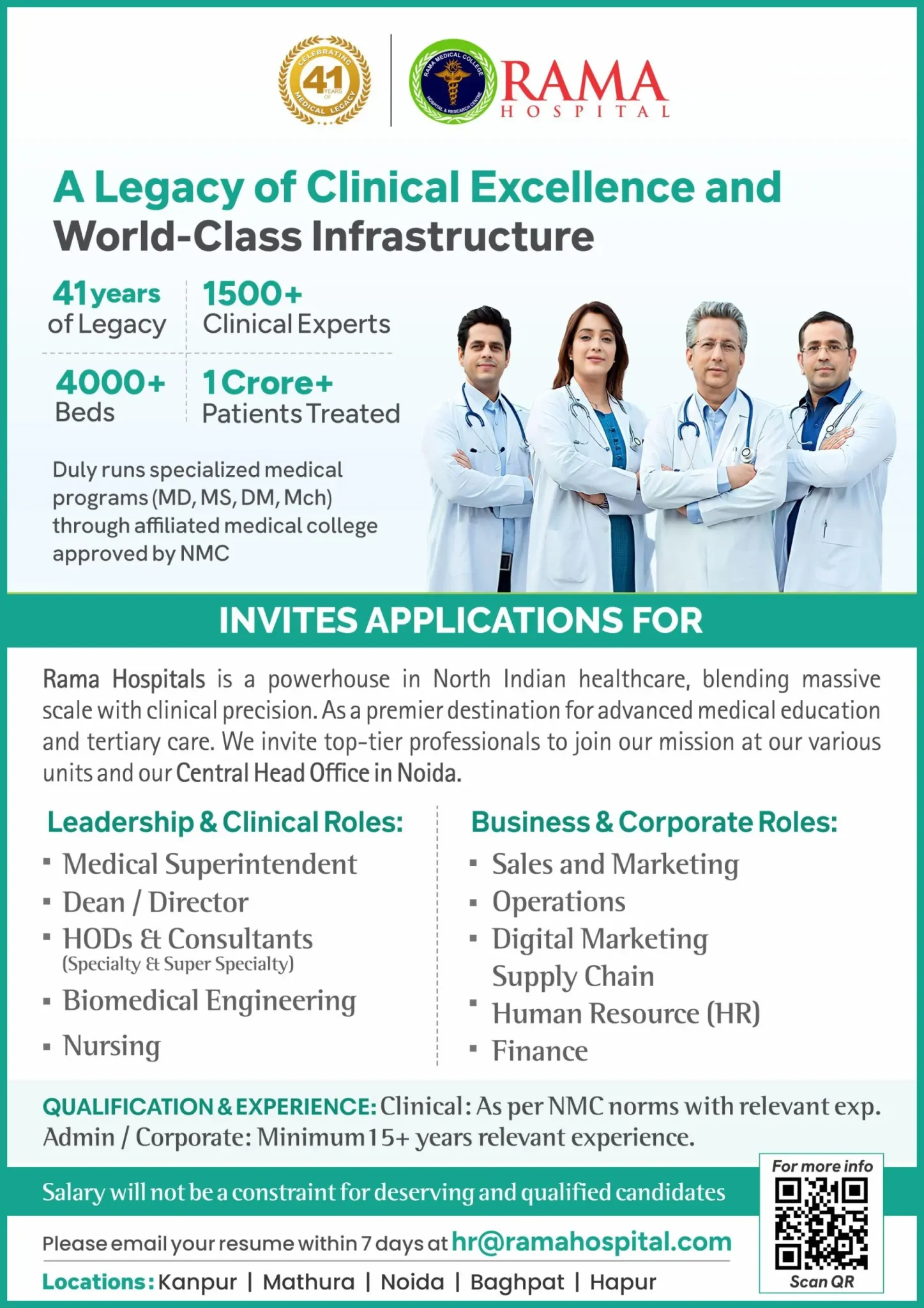 Thank you for considering Rama Medical College Hospital & Research Centre. I look forward to personally welcoming you to our institution and witnessing your remarkable journey towards becoming a compassionate and skilled healthcare professional.